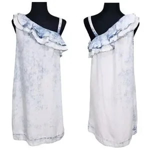 Holding Horses Womens Acid Wash Dress S Chambray Ruffle One Shoulder Boho Vaca
