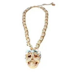 Betsey Johnson Sugar Skull Crystal Accents Gold Tone Chain Necklace