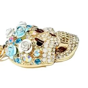 Betsey Johnson Crystal & Flower Sugar Skull Gold Tone Pendant Necklace NEW