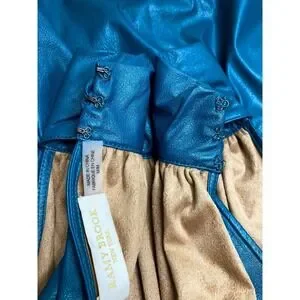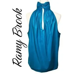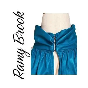 Ramy Brook Teal Faux Leather Halter High Neck Draped Vegan Leather Blouse Medium