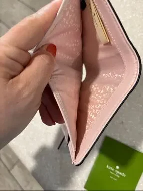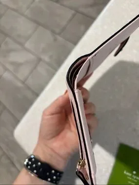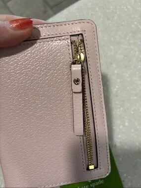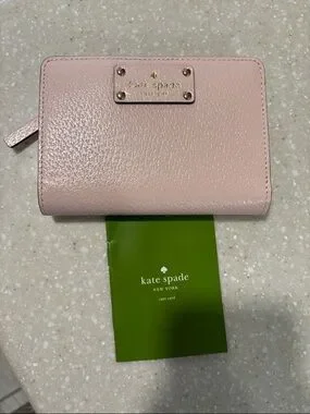 kate spade pale pink pebbled wallet with gold plaque