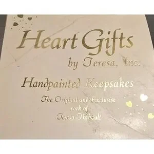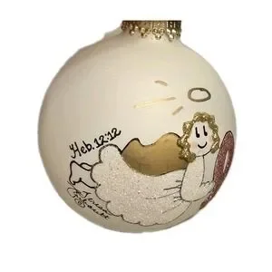 The "Heart Gift By Teresa Thibault Angel XMas Ornament" is a beautiful and meaningful addition to any Christmas decor. Featuring a pink ribbon and the message "Heb 12:12 Faith", this ornament is designed in the shape of a circle, symbolizing faith. The Teresa Thibault brand adds a personal touch to this angel-themed piece, making it a special gift or a lovely ornament to collect and cherish during the holiday season. Hand painted