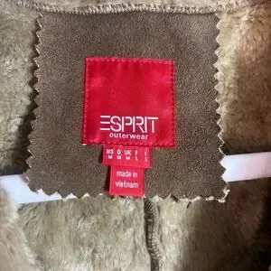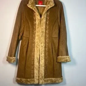 Vintage Esprit Faux Fur Suede Lined Long Coat Brown Size Medium
