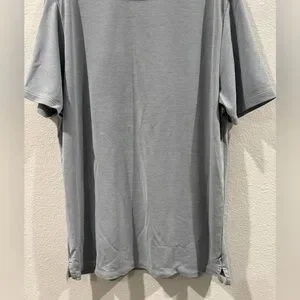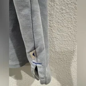 Light blue, soft, crewneck, casual, embroidered logo on back, side slits