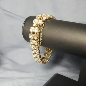 This stunning gold bracelet features sparkling crystal accents, perfect for adding a touch of elegance to any outfit.