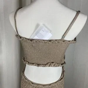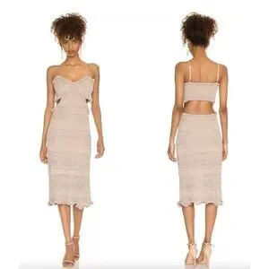 NWT MISA Women's Medium Skye Dress Platinum Rose Bodycon Cutout Boho Metallic