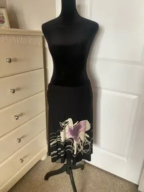 Black Midi Skirt with Purple Floral Accent