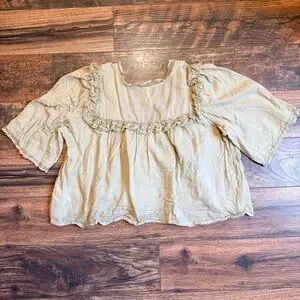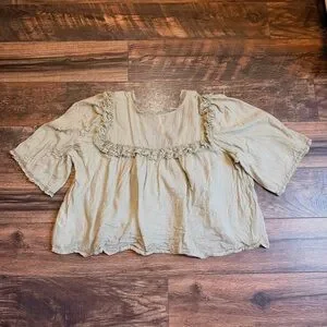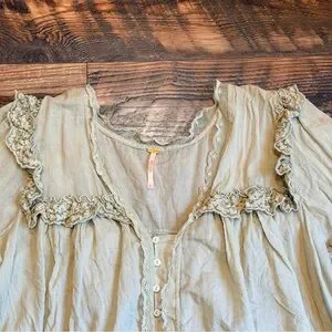 Free People Sage Green Lightweight Lace-Trim Blouse