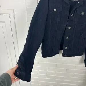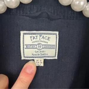 Good pre worn condition. Fat face UK retailer navy corduroy casual jacket. Buttons down the front as well as hem cuff buttons. Size US 2. 100% cotton. Fabulous little jacket for the fall season. All sales final.