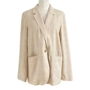 UNIQLO WOMEN'S LIGHT BEIGE WHITE BLUE PLAID SINGLE BREASTED SLOUCHY BLAZER - M