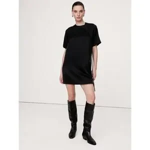 BANANA REPUBLIC SATIN FRINGE SHIFT DRESS IN BLACK SIZE MEDIUM
