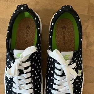 Cariuma OCA Women's Low Black Polka Dot Canvas Lace-Up Sneakers Sz US 9.5