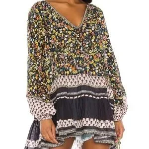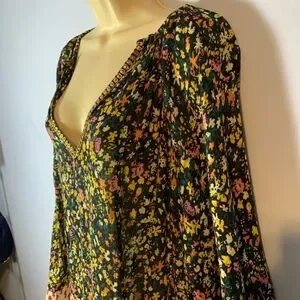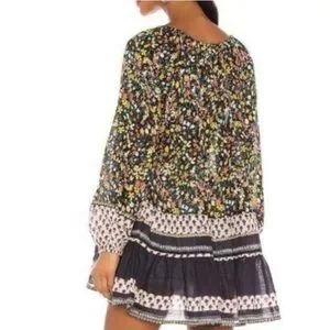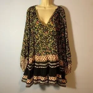 Free People Black gardenia tunic gold embellished dress medium balloon sleeves