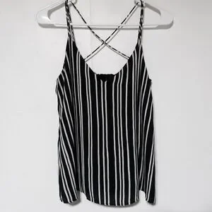 H&M Sleeveless Blouse Womens Shirt Top Black White Striped Sz 4 Business Casual
