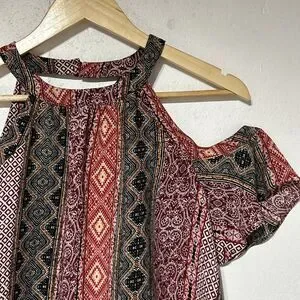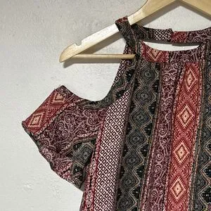 A Byer Womens Off The Shoulder Geometric Blouse Medium Shirt Top Red/Black