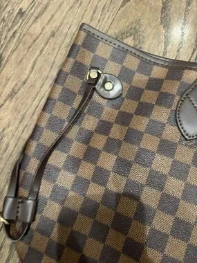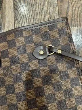 Stylish brown checked tote bag in a classic checkerboard pattern. Spacious, versatile design that fits daily essentials. Comfortable shoulder straps and secure top. Elegant brown color complements many looks.