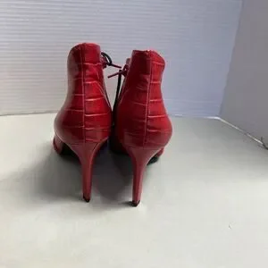 ZARA Trafaluc Red Croc Embossed Point Toe Stiletto Heel Ankle Boots 38 US 7.5-8