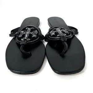 Tory Burch Miller Sandals Jeweled Embellished Black