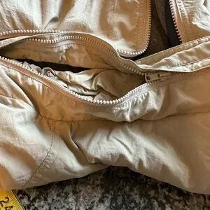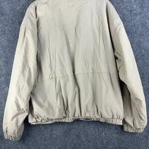 Greg Norman Jacket Mens Large Tan Nylon Fleece Lined Full Zip Hidden Hood