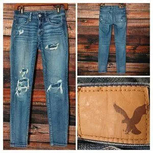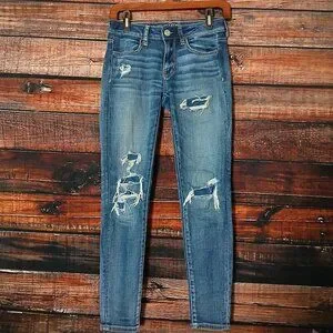 American Eagle Jeans Size 2 Short Ripped Patched Jegging Stretch Distressed
