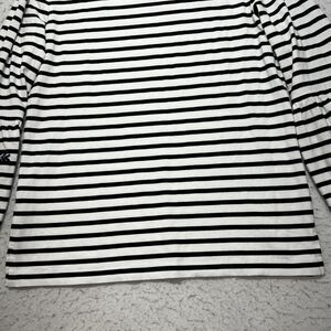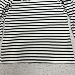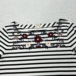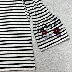 J. Crew Women's Medium Embroidered Floral Top Flared Sleeve Black White Striped