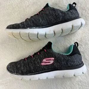 Skechers Summit Quick Getaway Sneaker Shoes Womens Size 9 Gray Black Blue Sporty Chic