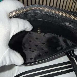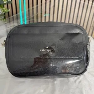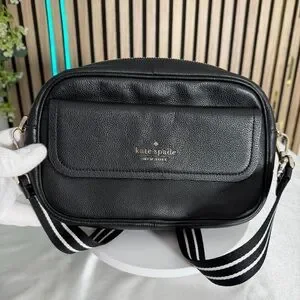 kate spade NY ♠️ Rosie Black Pebbled Leather Camera Bag with Striped Strap