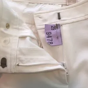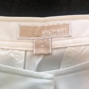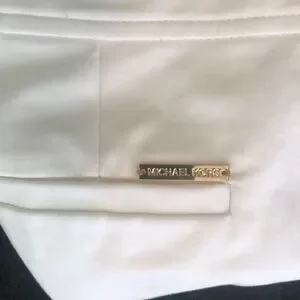 Michael Michael Kors white pants w decorative gold & brown half belt dry cleaned