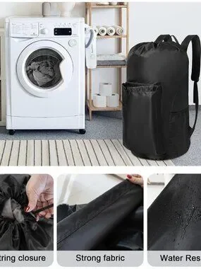 Free Your Hands Carry the laundry backpack on your back, without holding laundry bags or laundry hampers in your hands. 3 wide adjustable shoulder strap with pads and mesh inside, not only durable, but also very comfortable when carrying. The bag is laundry room essential.