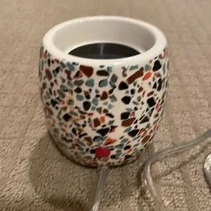 Stylish wax warmer with terrazzo design. Features multicolor pattern. Perfect for home fragrance. In good condition