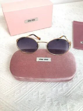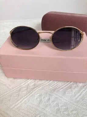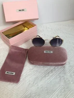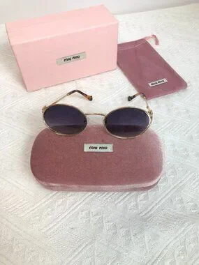 Miu Miu Gold Round Sunglasses with Original Packaging