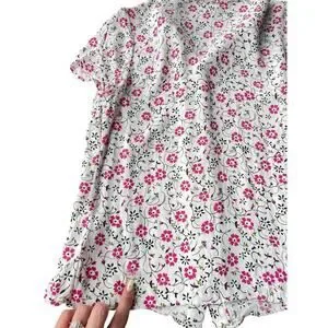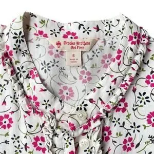 Brooks Brothers Red Fleece Floral White Pink Short Sleeve Flowy Blouse - Size 6