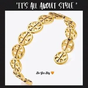 NWOT Tory Burch Authentic Signature Gold Logo Cuff Shiny Brass T-logos Bracelet