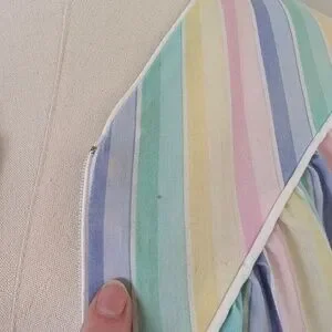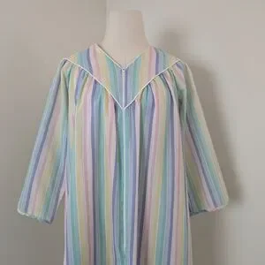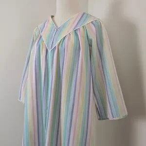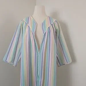 90's Striped Duster Pastel Wide Angel Sleeve Midi Zipper Front V-Neck 3/4 Maxi