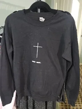Gildan Black Sweatshirt with White Cross and Text