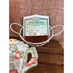 Temp-tations Tara Floral Casserole Dish Metal Stand Holder/Trivet Rattan Insert