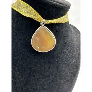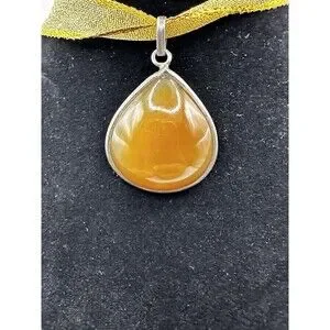 Natural Dendritic Agate Sterling Silver Pendant Orange Tearshape Unique Artisan
