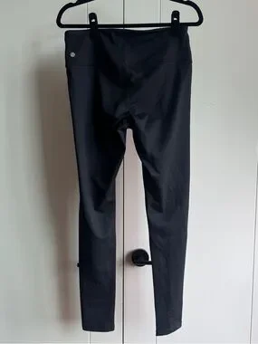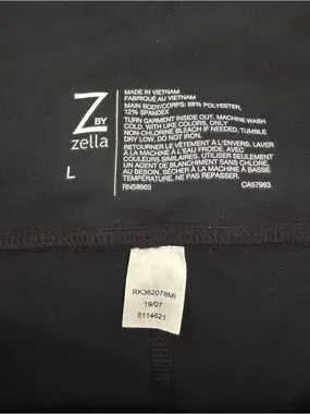 Sleek black Zella leggings. High-rise waistband for support. Smooth, stretchy fabric. Versatile for workouts or everyday wear. Simple, classic design.