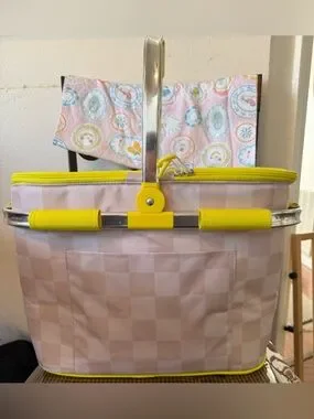 Yellow Fabric Picnic Basket with Front Pocket - Unbranded