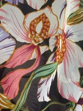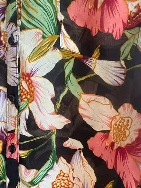 Bellatrix Moody Black Floral Blouse Tropical Breezy Resort Shirt Tail Medium