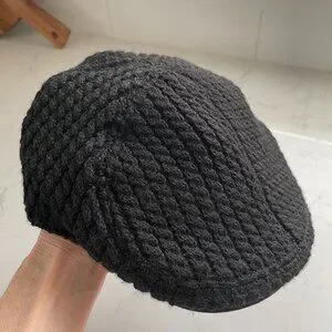 Features: newsboy style, knit, honeycomb stitched, acrylic, wool, warm, cozy, outdoor, neutral