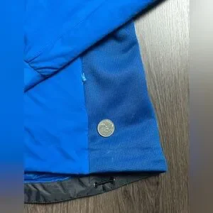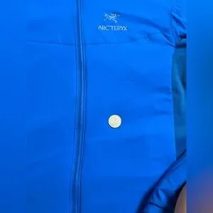 has a few minor marks (in photos) which can most likely be cleaned off just haven’t tried otherwise the jacket is in great condition/ no other damage