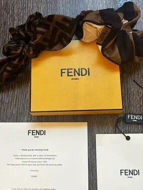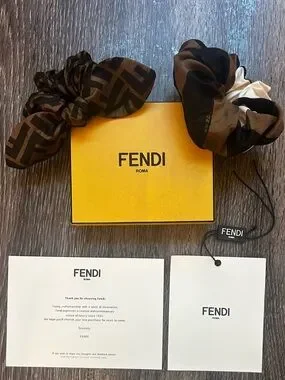 Fendi Hair Scrunchies. 100% authentic and purchased from Fendi website. One is a traditional scrunchie in the signature Fendi colors and the other is a bow scrunchie in traditional Fendi print. Super femme and chic. In brand new condition with original box and Fendi tag.