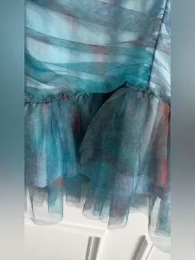 CBR Women’s Blue Turquoise Printed Ruffle Mini Dress Size M New New with tags
