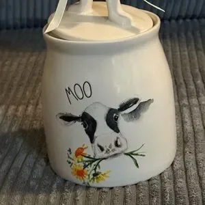 Rae Dunn Cow 🐄 with Flowers Canister- Farmhouse style- New