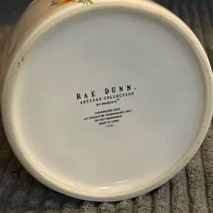 The Rae Dunn Cow 🐄 With Flowers Canister is a charming farmhouse-style kitchen storage item standing at 7 inches tall. Made of ceramic in a classic white color, this canister features a cute cow design that adds a touch of whimsy to your kitchen decor. The farmhouse theme and farmland-inspired detailing make it a delightful addition to any home looking to add a touch of rustic charm.