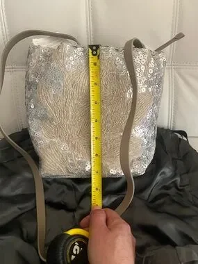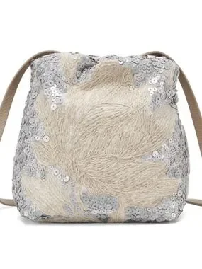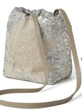 NWT Italy Brunello Cucinelli Sequined Embellished Silver Beige shoulder bag