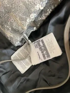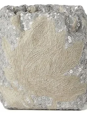 NWT Brunello Cucinelli made in Italy, 100% Authentic, shoulder bag . Elegant silver sequin tote with beige straps. Single shoulder strap, linen , drawstring fastening, slip pocket inside. It is floral motif. Original dust bag.
