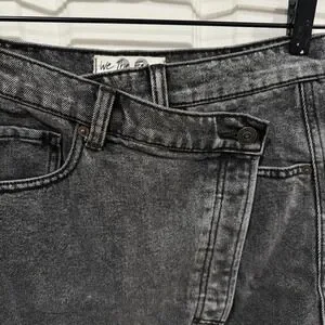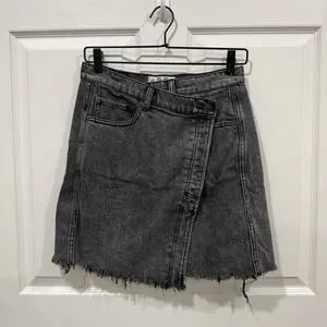 We The Free Womens Black Frayed Mini Wrap Denim Skirt Size 28 asymmetrical Jean