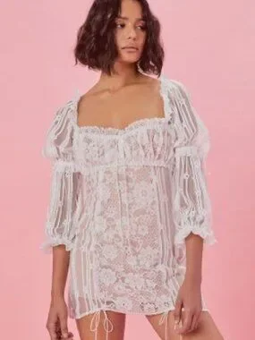 For Love & Lemons Monroe white lace mini dress Small new with tags